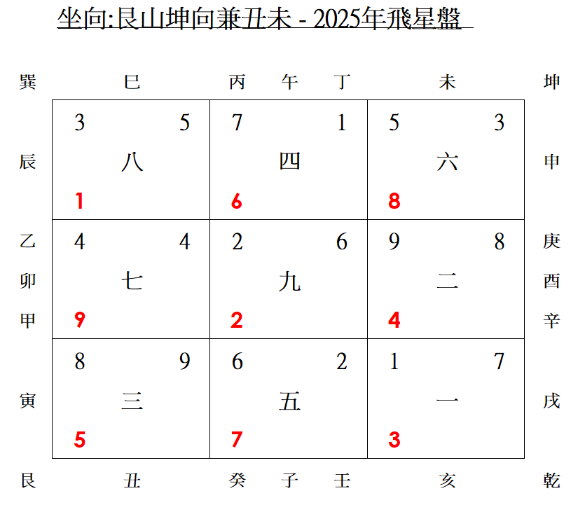 下圖為該辦公室於2024年及2025年的飛星盤,現附上供各位參考: